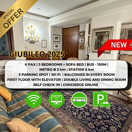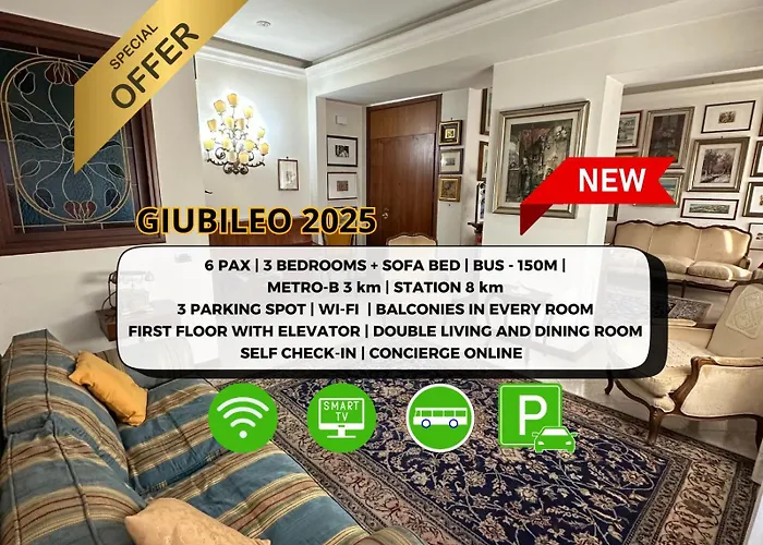 The spacious 140 m² apartment is nestled about 15 minutes by car from the Colosseum.
